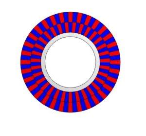 多极磁环沿圆周方向被磁化成多个交替的N/S极。增加极数可以提高磁场的空间分辨率,从而显著提升传感系统的输出分辨率。多极磁靶非常适合需要连续、高精度角度反馈的工业伺服系统和机器人关节。极对数等参数可根据您的芯片能力和系统要求进行定制,以在分辨率、信号稳定性和成本之间达到最佳平衡。多极磁环可根据其磁化轨道分类: